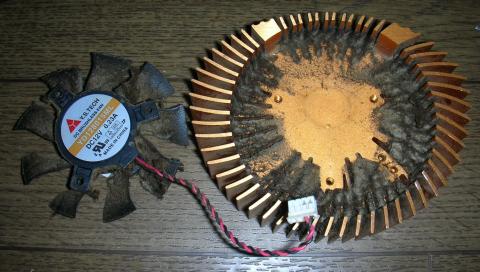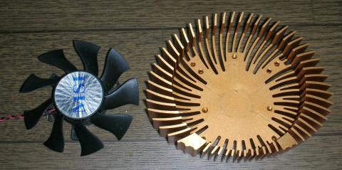 ファンは中古品であり、やや擦れた音がしますが、それでも8800GTのリファレンスタイプのクーラーよりはずっと静かです。