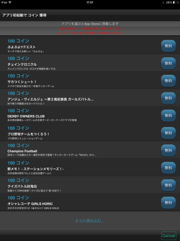 私が確認した限り、SEGAのゲームアプリばかりだったので、出会い系等の怪しいアプリで無い点も良いと思います。対象アプリは日々増減するので、要チェックです。