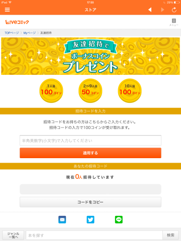 他にも、友達招待とかでもコインが貰えますが、今回は止めておきました。