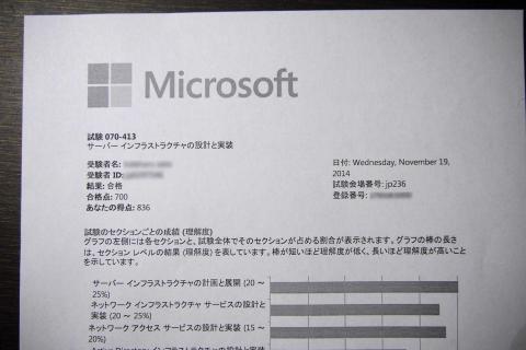 70-413はその中で、基本的な部分、Active Directory、ストレージ、セキュリティ、ネットワークや仮想化、Azure、Office365などの基本的な部分の試験です。