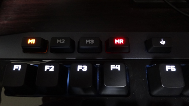 ただしこちらもG910では改善されていて、G910ではG1は半角/全角キーの真横にきていました。その代わりに左側のキーはG1~G5の5つに減ってしまいましたが、減った分はファンクションキーの上に移動して、さらにGキーも増えています。その方がいいと思います。絶対押し間違えます。