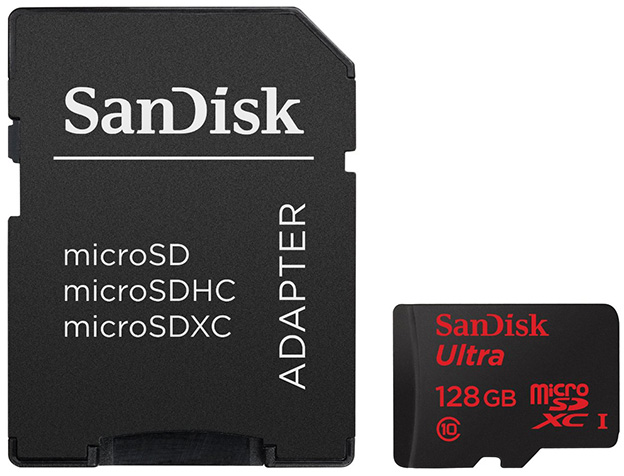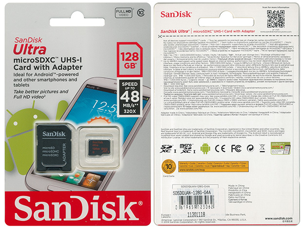 日本のSanDisk正規品の micro SDXCカード 128GB Ultraは、40MB/sなのですが、今回購入した海外パッケージ品では、48MB/sとなっていて、メモリカードのデザインも異なっています。