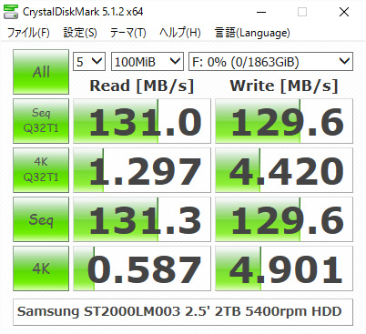 2.5inch HDDケース角黒にいれてCrystalMarkを走らせると