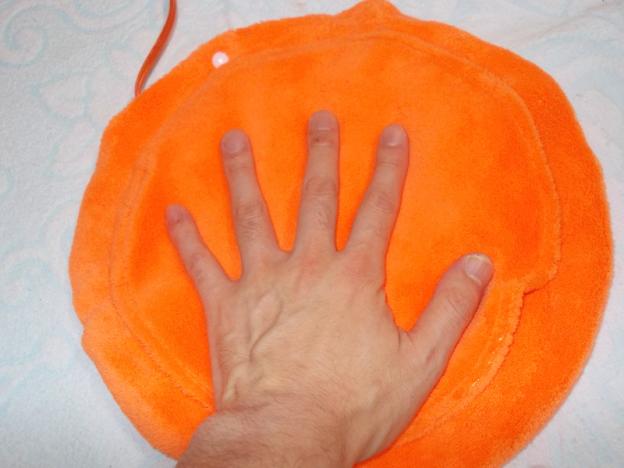 手なら両手いけ、腹にはピッタリのサイズですが足は大人では少し小さく、
