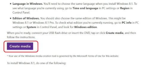 ソフトのダウンロードは下記のアドレスの「Create media」ボタンになります。