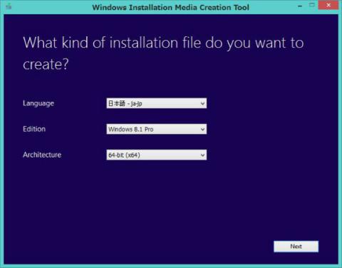 気を取り直してアドミンで起動すると、「言語」、「Windows8.1 or Windows8.1 Pro」、「32-bit or 64-bit」が選択できます。