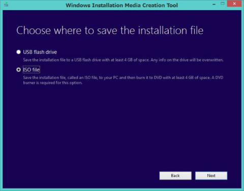 「Next」ボタンを押すと、「USB flash drive」と「ISO file」が選択でき、私はDVDに書き込む為に「ISO file」を選択して、「Next」ボタンを押します。