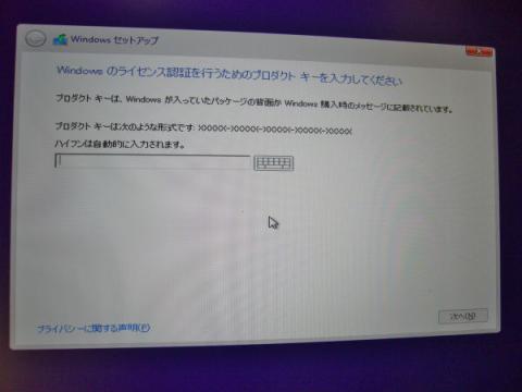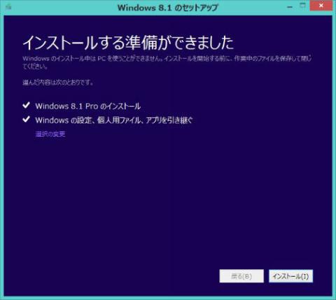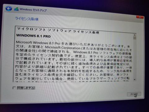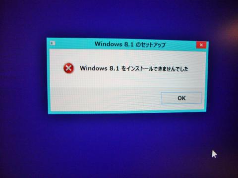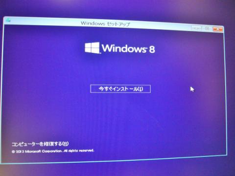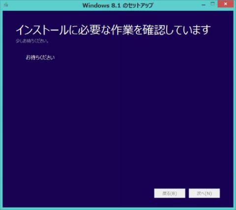 インストールが始まってしまい、「Windows 8.1 のセットアップ」画面が出て来てしまいました。