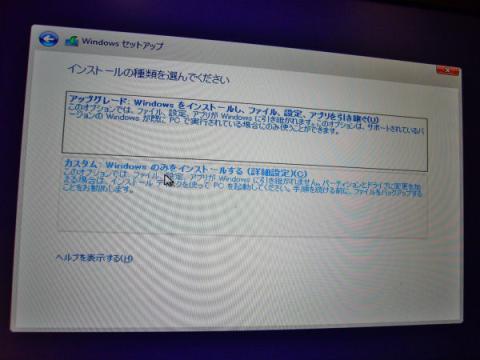 クリーンインストールする場合は下に有る「カスタム」をクリックします。