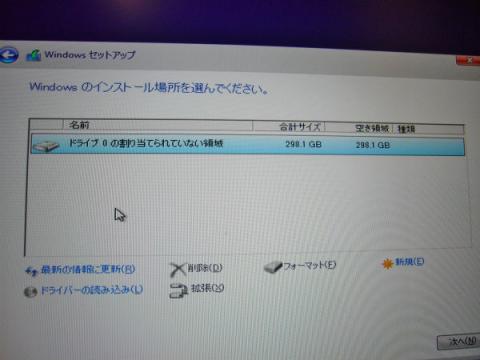 クリーンインストールを目指しますので、領域を解放(ファイルが無い状態)したHDDにインストールを行います。