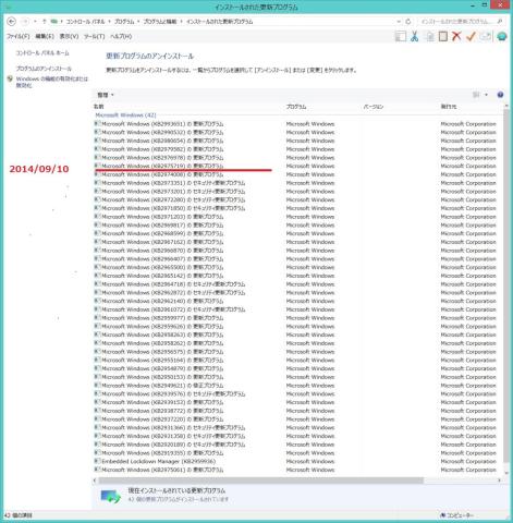 インストールメディアDVDは2014年11月23日に作成したのですが、「Windows Update」の更新履歴を確認した所、9月10日までの更新が入っている状態でした。
