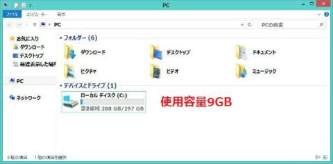 こちらはWindows 8.1 Pro 32bitをクリーンインストールした状態で、たった9GBしかHDDを使用していません!!!