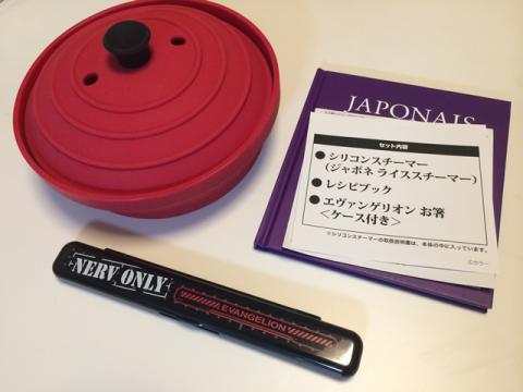 中にはジャポネ ライススチーマー レッド 本体とレシピ本