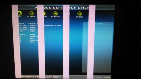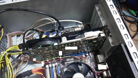 表示がタイ━━━━||Φ|(|゚|∀|゚|)|Φ||━━━━ホ!!!!!!のようで、Win7起動時にハングアップします・・・典型的なGPU又はメモリのハンダクラックの症状です(´・ω・`)・・・