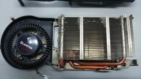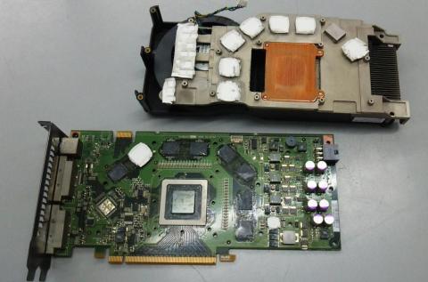 GPUクーラーはリファレンスデザインと思われ、2スロット占有タイプでシロッコファンを搭載しています。この世代は何故かHDMIよりもDVIが多く、本機もDVI-I×2基搭載されています。(恐らく変換コネクタでHDMI出力が可能だと思われます)