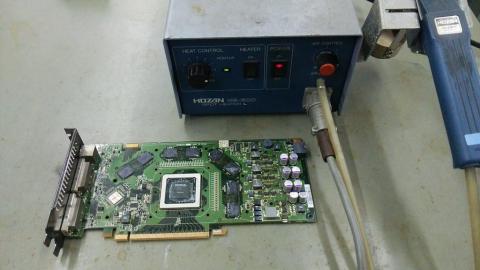 特にドライヤーやオーブントースターで基板全体を加熱すると、タンタルコンデンサなどを低抵抗モードで故障させるリスクがあります。こうなると強力なPC電源の大電流がその部分に流れ発火する可能性も十分にありますので、知識のある方意外は「絶対に」真似しないでください。