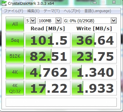 Test : 100 MB [G: 0.0% (0.0/28.9 GB)] (x5)