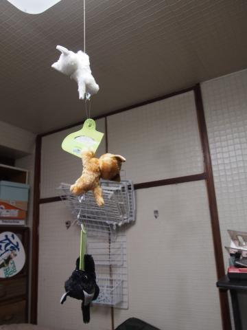 部屋の電気の紐なんかにもぶらさがっちゃいます。