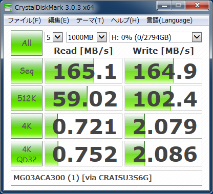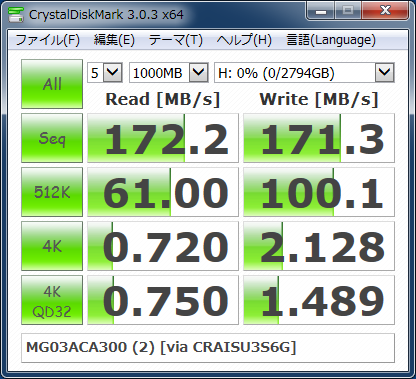 裸族の頭 USB3.0 にて計測。