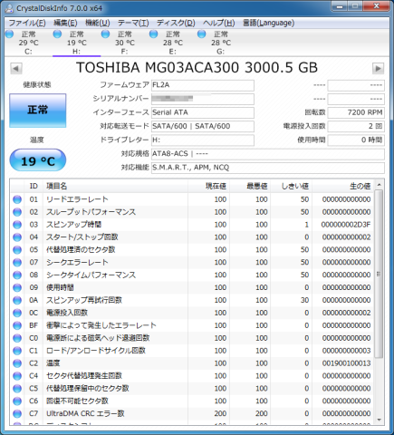 動作音は東芝製HDDらしく低くゴリゴリとメカ音が感じられるもので、お世辞にも静粛性が高いとはいえません。まあ、以前は15,000rpmのSCSI HDDを複数台組み込んだPCをメインで使っていた人間の感覚でいえば、気にするほどでもありませんが。