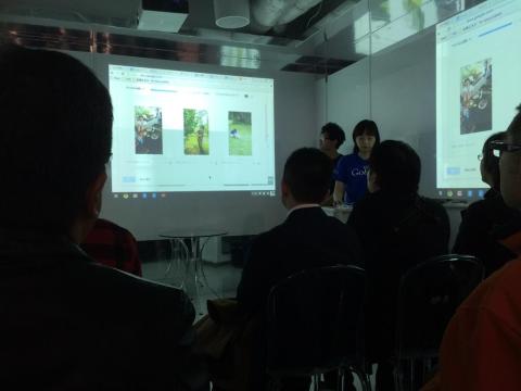 パワーポイントのファイルをGoogleMailで転送、即座にDocsで編集、そして転送したり、写真をGoogle+へアップロードし、共有したりWeb上で編集して見せてくれました。