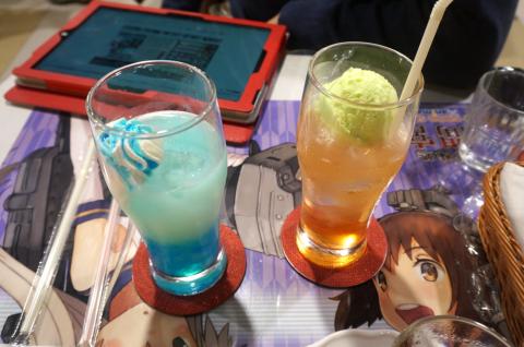 こちらはD提督は頼んだカラフルな「夕張のイロイロ試してみたドリンク」という名前がヤバそうなのと雪風の幸運ドリンク。特にギャーとかいってなかったんでいろいろ試した結果問題なかったのだろう。