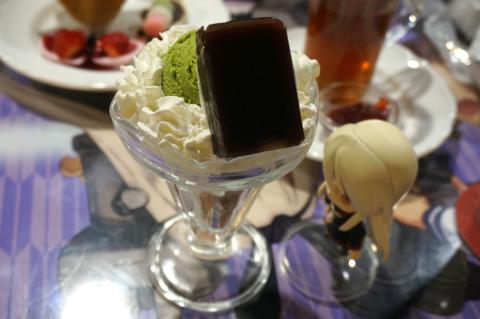 デザート。自分が頼んだ間宮パフェは羊羹にカリントウに生クリームに抹茶アイスと火力抜群の甘さ。羊羹が落ちそう。