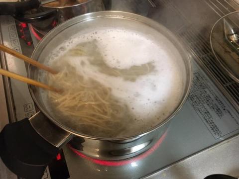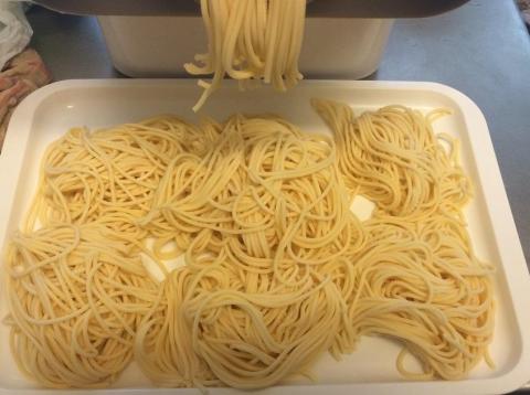 パスタの茹で上がったあとの写真を撮り忘れましたが、モチモチの生麺が出来上がりました。