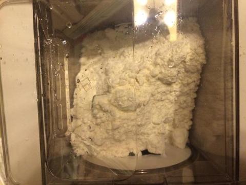 粉がまとまってきて小さな玉がいくつかできたかな?くらいの水分量でOKです。