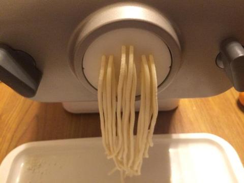 設定時間がくるとピーって電子音が鳴って麺が前面のアタッチメントから出てきます。