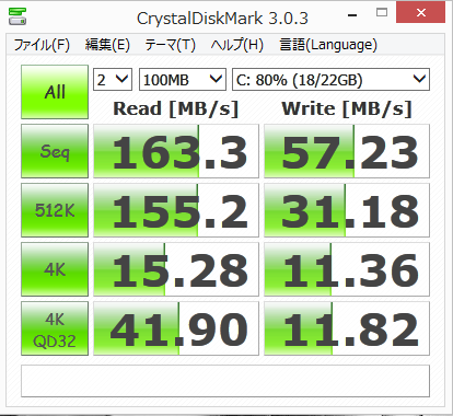 参考までに手持ちのMiix2 8のemmcでのCDMです。