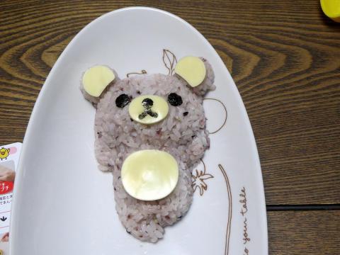 キャラ料理を行うのにライスは単色が良いのは重々承知していますが、急きょ作る事になったのでいつも食べている十穀米になってしまいました(^^;