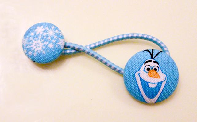 オラフのヘアゴムの完成。(小さい方が22mmのくるみボタン)