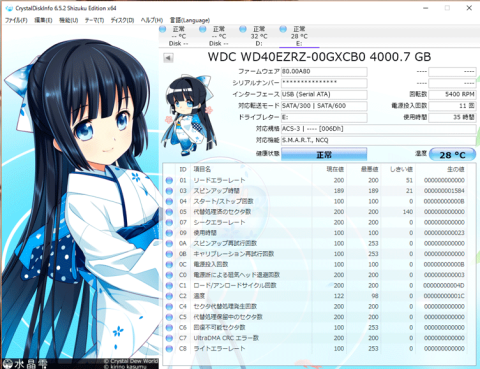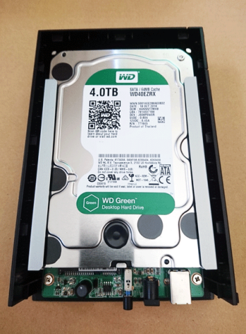 採用しているハードディスクはWestern DigitalのWD Blueシリーズ「WD40EZRZ-00GXCB0」でした。
