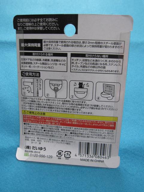強力マグネットで、台座を作り、小物を置く場所を作るのは、よくあるパターンの商品でありますが、このキャッチトレイは、さらに下部に、ぶら下げる場所までも作っています。
