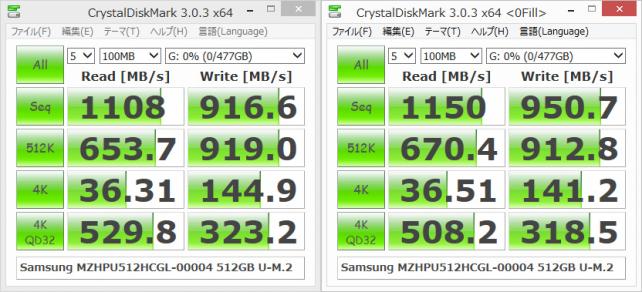勿論、PCI Express Gen2 x4仕様のSSDを、PCI Exress Gen2 x2のM.2スロットに挿す訳ですから、フルスピードで動作するわけではありませんが、結構なパフォーマンスが出るのではないかと思っていました。
