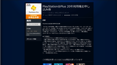 プレイステーションの20周年を記念して20141203に開催された、PlayStation関連タイトルの表彰イベント「PlayStation Awards 2014」で発表された「PlayStation Plusの20年利用権」です。