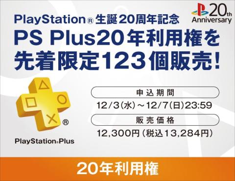 PlayStation®生誕20周年記念企画 PS Plus20年利用権