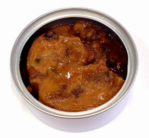 「缶を開けるだけで、そのままおつまみに」の「缶つま」です。蓋を開けたら、味噌が固まってて、「赤貝」の形が分かりませんでした。