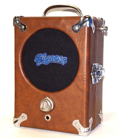 「Pignose」という名前からしてステキすぎるメーカーの製品です。ポータブルギターアンプということで、サイズは小さめですね。