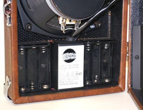 スピーカーの下には電池ボックス。単3電池6本で5時間くらい駆動できるようです。