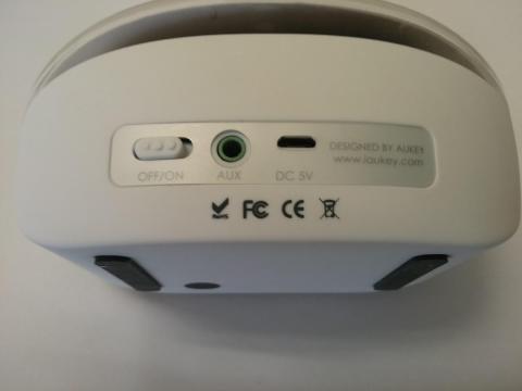 背面には、電源(ON/OFF)スイッチや充電用USB micro端子とAUX入力端子があります。