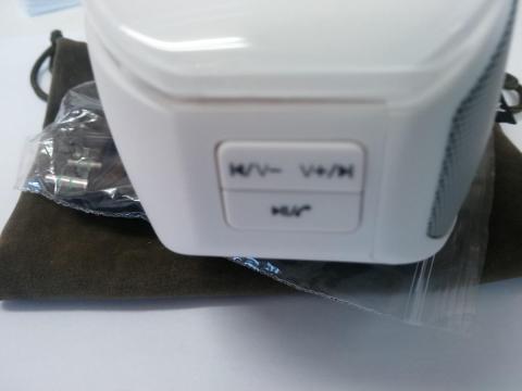 4. スピーカー本体に、機器操作「送り(Vol+)/戻し(Vol-)/一時停止」ボタンが有り、Bluetoothによるワイヤレス接続で操作することが出来ます。