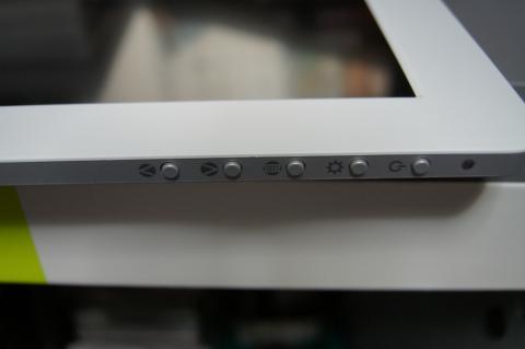 右側には電源ボタンや入力切替、ボリューム調整ボタン等が並びます。