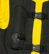 エアーバッグの種類によって、何処が守られるかは違いますが、ハーネスタイプは首・胸・腰・脇腹下と上半身をぐるっと一周した気室が膨らみ、守ってくれます。
