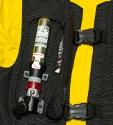 右脇腹にある膨らみの中に、エアーバッグを膨らませる為のCO2ボンベが内蔵されています。