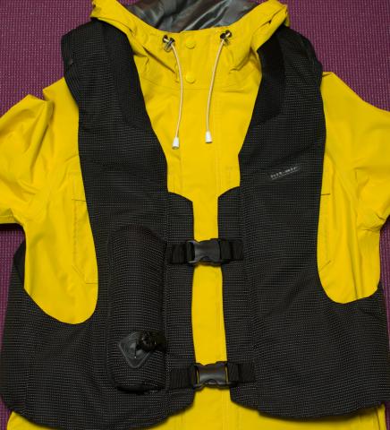 ベストタイプと何が違うの?っていうと、ベストタイプがエアーバッグを内蔵しているのに対して、ハーネスタイプはエアーバッグ自体を纏うと思って貰ったら良いです。