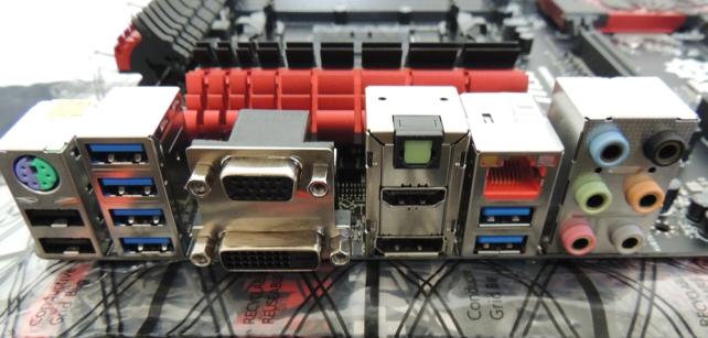 一番左にあるP/S2コネクタとUSB2.0コネクタは、一般的なコネクタよりも端子メッキ厚を三倍増とした「ゲーミング・デバイス・ポート」となっており、高ポーリングレートのマウスやキーボードの接続に対し、高い順応性を誇る。