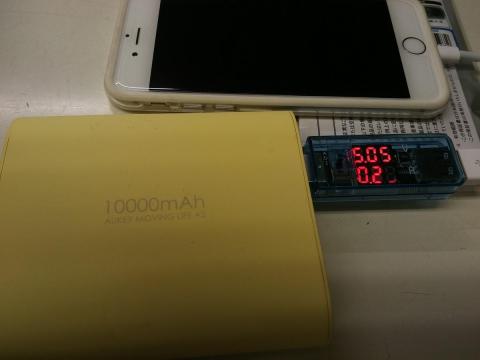モバイルバッテリーと充電する機器の間に入れておくと、電圧、電流が表示されて、