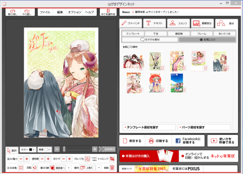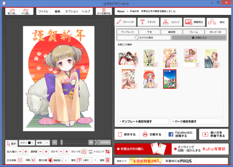 日本郵便が公式ソフトとして無償配布している「はがきデザインキット2015」です。